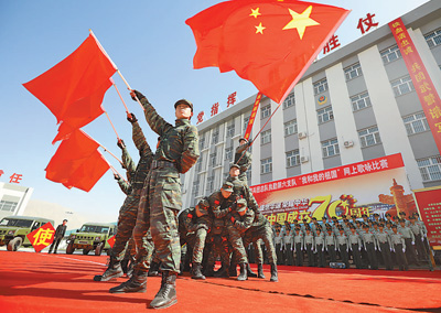 为庆祝新中国成立70周年,武警兵团总队执勤第六支队日前举办多项迎国庆活动。图为官兵在唱歌排练。 赵凯杰摄(人民视觉) |