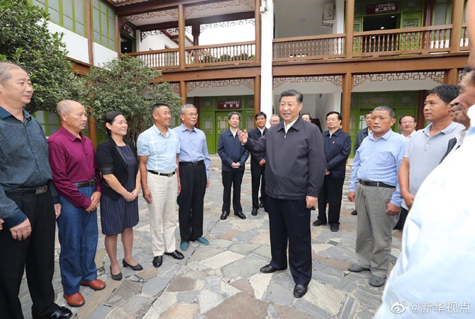 16日下午,正在河南考察调研的习近平总书记来到位于新县的鄂豫皖苏区首府烈士陵园和革命博物馆,缅怀革命先烈,告慰革命英灵,并与当地红军后代、革命烈士家属代表亲切交流。习近平强调,“吃水不忘掘井人”,红色江山来之不易,是千千万万革命前辈用鲜血换来的。我们要牢记红色政权是从哪里来的,始终铭记缅怀革命先烈。今年是新中国成立70周年。开展“不忘初心、牢记使命”主题教育,广大党员、干部要不断接受红色传统教育,巩固升华理想信念,坚定走中国特色社会主义道路,奋力实现“两个一百年”奋斗目标,告慰革命先烈。(文字记者:张晓松、朱基钗 摄影记者:鞠鹏、谢环驰)