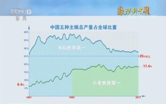 如果把1949年的粮食产量作为基础,在播种面积变化不大的情况下,我国70年粮食年产量增长5倍。