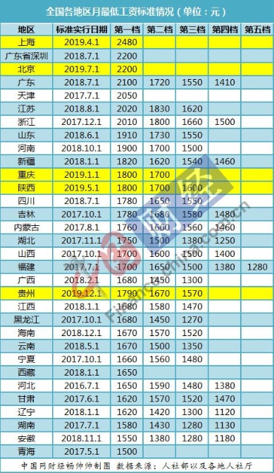 上海连续4年位居月最低工资榜首