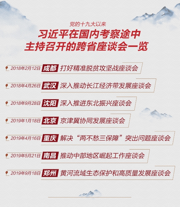 △党的十九大以来习近平在国内考察途中主持召开的跨省座谈会一览。