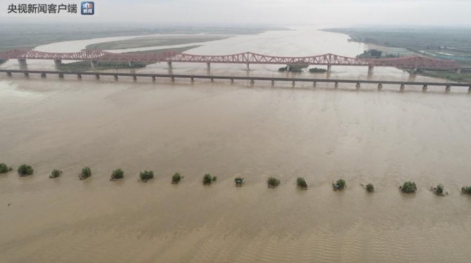 △从临河广场上空,可以远眺到见证新中国铁路变迁的三座桥。从上到下依次是郑焦城际铁路黄河大桥、京广铁路黄河大桥(已退役)、郑州黄河铁路桥(已拆除)。(央视记者谢岩鹏拍摄)