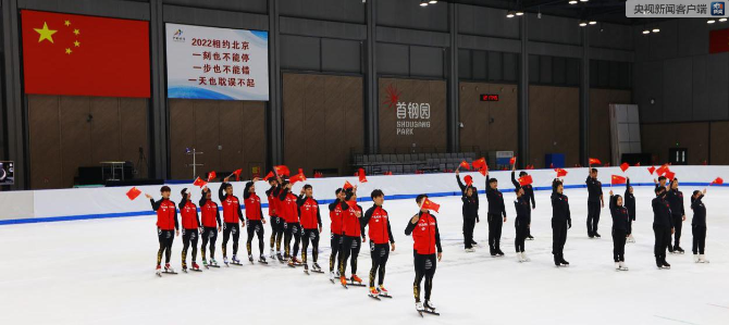 “欲戴王冠,必承其重”。如今,他们正在刻苦训练,期待2022年冬奥会赛场上升起的五星红旗。今天,他们带着这个愿望来到现场,与国旗同框,为祖国祝福,为自己加油。