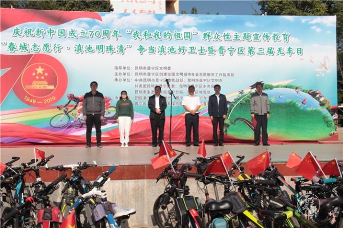 9月22日是“世界无车日”。当天上午,昆明市晋宁区组织开展庆祝新中国成立70周年“我和我的祖国”群众性主题宣传教育、“春城志愿行·滇池明珠清”争当滇池好卫士暨晋宁区第三届无车日公益骑行集中志愿服务活动。
