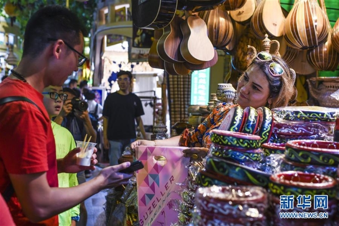 人声鼎沸的大巴扎景区,欢快的歌舞,丰富的美食,每天吸引着10余万海内外游客汇聚于此。夜愈深,霓虹愈璀璨,映照着一张张笑脸。