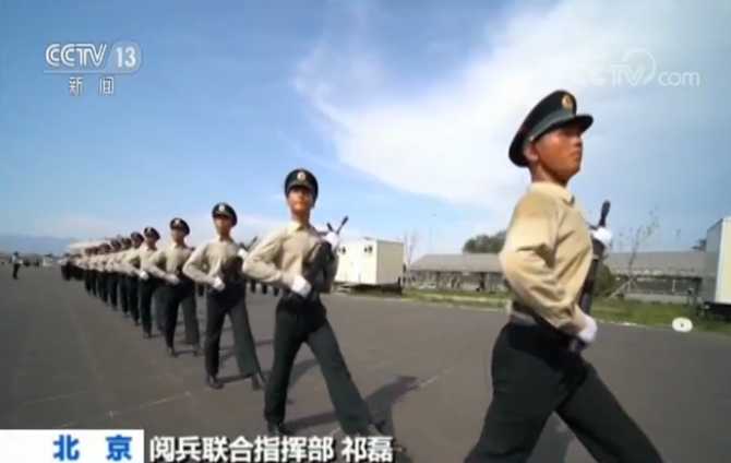 央视记者 李迎新:置身在训练场,我们可以真切地感受到一股澎湃的激情在涌动。我们有理由相信,在国庆节那一天,呈现在世人面前的,必定是一场凝聚民族魂、提振强军志的精彩盛典。