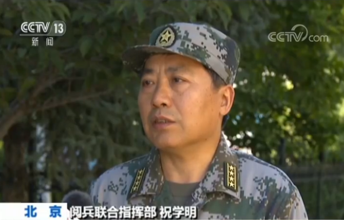 阅兵联合指挥部 祝学明:我们组织医疗人员深入训练一线实施全程伴随保障,抽组医疗专家开展巡回诊疗和心理服务,同时,我们还严把食品安全关口,对食品供应、加工等环节实行严格的检验检疫和留验制度,确保了受阅官兵饮食安全和身心健康。