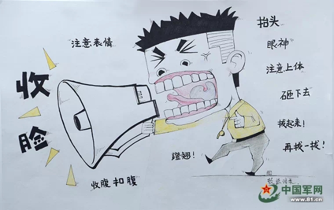 “注意表情”“收腹扣腹”“砸下去”……一张“教练员张着大嘴、手拿超大扩音器”的夸张画面十分生动。进驻阅兵集训点训练以来,为了让排面达到“横看成线、竖看成线、斜看成线”的标准,教练员费尽口舌、操碎了心,嗓子喊哑了、脖子晒脱皮了,但是为了“全军一流、历史最好”目标,他们始终挺立在训练场严格组训、精细施训,多次在上级组织的考核中名列前茅,方队被徒步方指评为“优胜方队”,为火箭军争得了荣誉,成为名副其实的“火箭军仪仗队”。