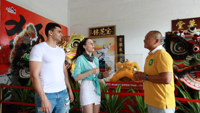 亚美尼亚小夫妻高佳丽(Gabrielyan Goharik)、凯撒(Barseghyan Ghazaros)慕名来到醒狮文化的发源地广东南海观看了醒狮表演,还拜师学艺,亲身体验了一番。