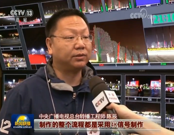 中央广播电视总台转播工程师 陈辰:制作的整个流程都是采用4K信号制作,我们还投入了大量携带4K拍摄设备的特种设备,这个以前是从来没有过的。