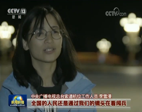 中央广播电视总台索道机位工作人员 李雪漫:毕竟在广场上,现场能看到的是少数人,全国的人民还是通过我们的镜头在看这个阅兵。一定要把它做到极致,这样才对得起全国人民。