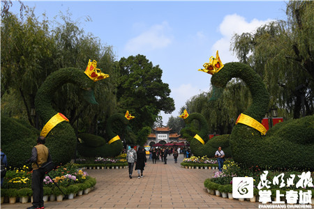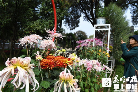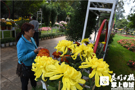 报道中介绍,国庆期间,云南省昆明市大观公园举办金秋菊展庆祝新中国70华诞,数百个品种、上万盆精品菊花吐芳争艳,迎接四海宾客,其中的绿萍、盘龙玉蝶、绿云、五彩龙爪等品种尤其珍贵。进入公园正门,一眼就能看到用五色草及各种时令花卉制作的“庆祝中华人民共和国成立70周年”造型花坛,众多游客在花坛前拍照留影。(掌上春城 记者靳玉娇)