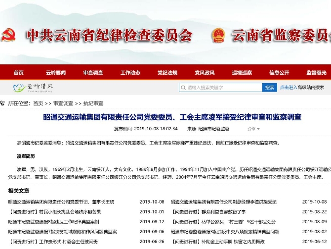 6686体育讯 机器人小明 据昭通市纪委监委消息:昭通交通运输集团有限责任公司党委委员、工会主席凌军涉嫌严重违纪违法,目前正接受纪律审查和监察调查。