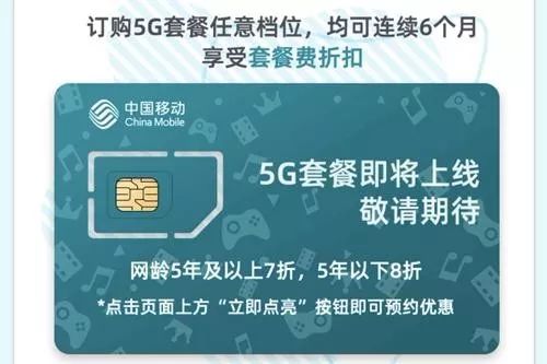 据介绍,预约享折扣价,都是根据网龄来计算,领取后,用户可享受连续6个月折扣价格(根据各个运营商全国5G套餐统一价进行的折扣)。中国移动是网龄5年及以上享7折优惠,网龄5年以内享8折优惠。中国电信和中国联通是网龄3年及以上用户享7折优惠,网龄3年以内及新入网用户享8折优惠。另外,预约成功的用户,购买运营商指定的5G手机,可享受300-600元不等的优惠,或赠送礼包、智能音箱等。