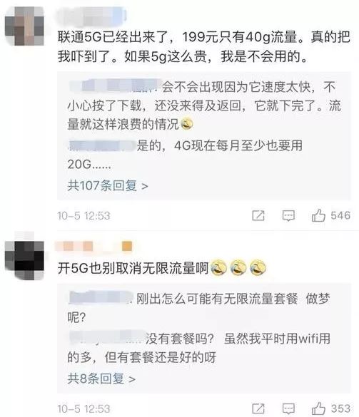 5G开启预约后,网友也议论纷纷。有网友称:“听说联通5G已经出来了,199元只有40GB流量,真的把我吓到了,如果5G这么贵,我是不会用的。”