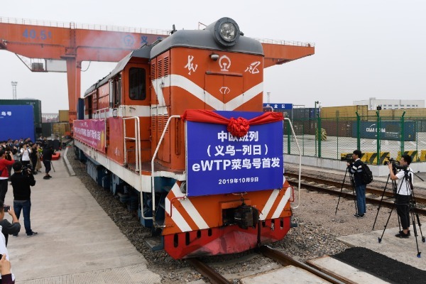 10月9日,中欧班列(义乌-列日)eWTP菜鸟号正式开通。新华社记者 黄宗治 摄