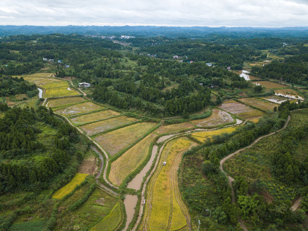 无人机拍摄的四川省乐至县三河咀村的稻田 李昕锋 摄