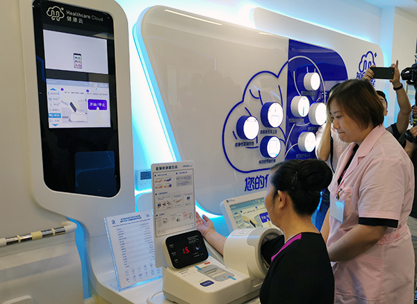 智慧健康小屋中可以自助测身体指标的健康云平台 王彤摄