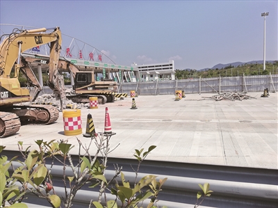 平兴高速公路八尺主线收费站正在实体拆除。