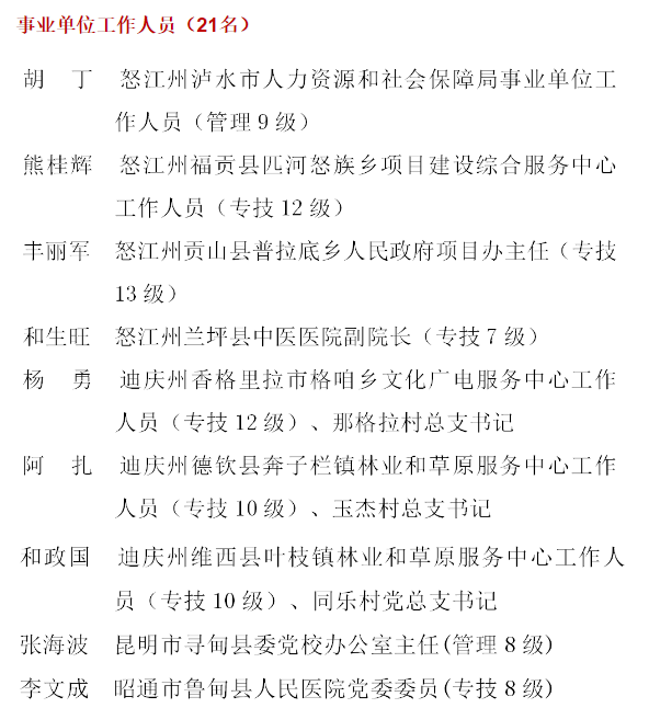 在全国第六个扶贫日到来之际,省人力资源社会保障厅决定,给予云南省“三区三州”的怒江、迪庆及其他贫困地区事业单位脱贫攻坚21个先进集体和21名先进个人记大功奖励(名单附后)。同时,按奖励权限,州(市)人力资源社会保障部门为125个集体、1668名个人记功,县(市、区)人力资源社会保障部门对640个集体、12587名个人进行嘉奖。这是我省首次在全省贫困地区事业单位中开展脱贫攻坚专项奖励工作,旨在激励全省广大事业单位及工作人员进一步行动起来,积极投身云南脱贫攻坚主战场,齐心协力打赢脱贫攻坚这场硬仗。