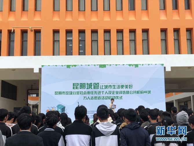 16日,昆明垃圾分类先进评选暨公共机构“46城万人志愿者”活动在云南长水外国语中学启动。