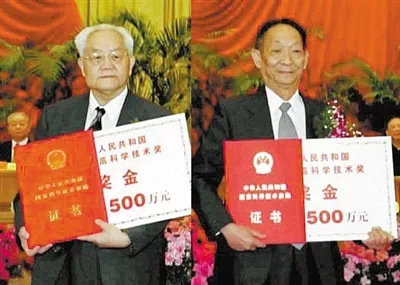 吴文俊(左图)和袁隆平(右图)荣获2001年度首届国家最高科学技术奖,并分别获得500万元奖金 | 图自新华社