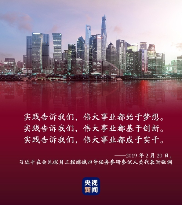 习近平总书记在讲话中指出,梦想是激发活力的源泉。中华民族是勇于追梦的民族。党中央决策实施探月工程,圆的就是中华民族自强不息的飞天揽月之梦。月球探测的每一个大胆设想、每一次成功实施,都是人类认识和利用星球能力的充分展示。在建成社会主义现代化强国、实现中华民族伟大复兴的征途上,每一个行业、每一个人都要心怀梦想、奋勇拼搏,一步一个脚印,一棒接着一棒,在奋力奔跑和接续奋斗中成就梦想。