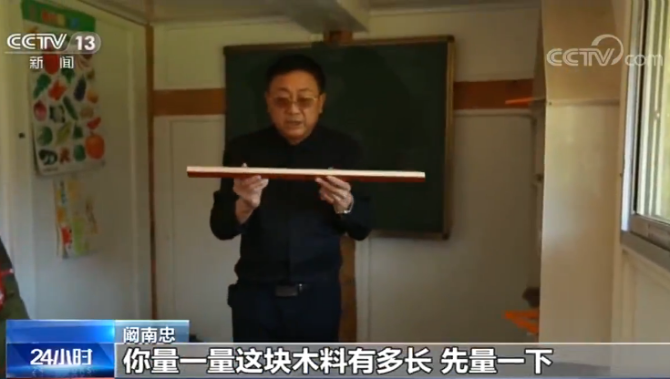 阚南忠:你量一下这块木料有多长,先量一下多少。