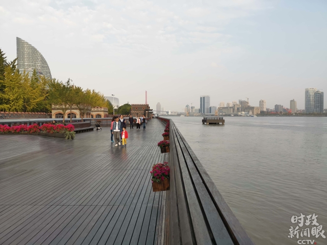 △杨浦滨江公共空间,总长5.5公里。(央视记者魏建拍摄)