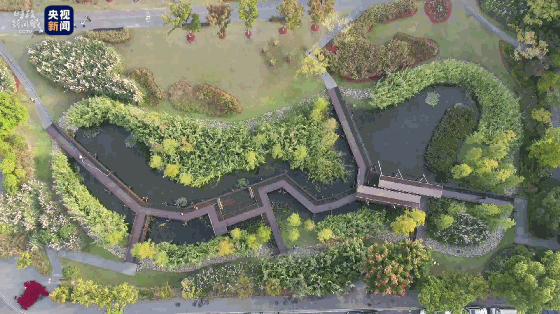 △这里是杨浦滨江的一处雨水花园,也叫芦池杉径。利用海绵城市的原理,将雨水储存在地下储水罐里,在缺水季节用于灌溉绿化。(央视记者周力拍摄)