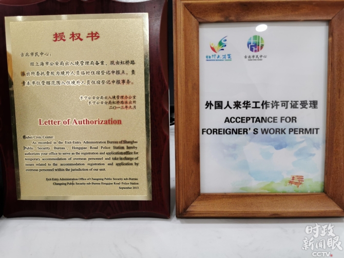 △在古北市民中心,外国人在社区就能申请办理来华工作许可证,这在上海还是头一个。