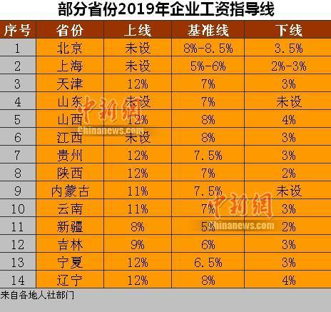 据不完全统计,截至11月2日,至少已有北京、上海、天津、山东、山西、江西、贵州、陕西、内蒙古、云南、新疆、吉林、宁夏、辽宁等14个省区市公布了2019年企业工资指导线。