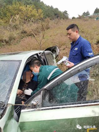 这时,一名前来帮忙的村民小心翼翼地将身体探进车内,轻轻地解开了安全带,以便伤者能够更顺畅地呼吸。