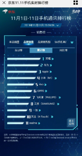 2019年上半年,中国手机市场依然处于低谷,爬升缓慢。5G将激活下一个时代,在4G时代的最后阶段,双11仍见证着中国手机行业的繁盛。以华为、荣耀、苹果为头部销量代表,小米、vivo、OPPO等也在发力紧随其后。从榜单上能够看出,除苹果外,大部分消费者对国产手机的选择远大于国外企业,价格是第一方面,同时手机的产品力和创新科技,本土品牌有着明显优势。荣耀大举科技创新并将自研核心技术普及到各价位段产品中,进而赢得更多用户的青睐。