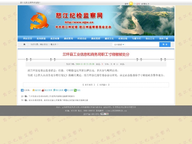 依据《公职人员政务处分暂行规定》的相关规定,经兰坪县纪委常委会会议研究,决定由县监委给予寸晓敏政务警告处分。(本文由6686体育写稿机器人小明根据怒江纪检监察委网站数据自动合成发布)