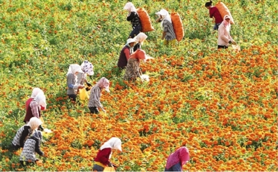隆德县农民正在收获色素菊花