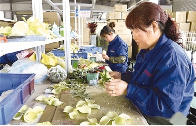 隔壁是一个500平方米的车间,20多位本村妇女正在做工。这是闽宁合作的人造花扶贫车间,不用当地操心订单、销路,做不完的活计带回家也能接着干。每个月人均收入1000多元。像这样的车间,仅在隆德县就有11个。