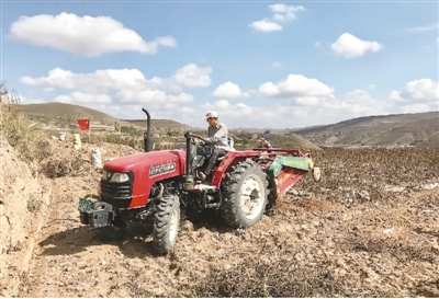 权振堂开着洋芋机,翻出一地“红蛋蛋”。记者刘少华摄