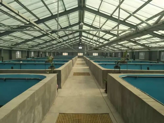 走进繁育车间,涂在池壁上蓝莹莹的漆,让人想到了安静温馨的医院。而在双层膜温棚,抬头是浅蓝色的穹顶,又仿佛看见了碧空如洗的天。
