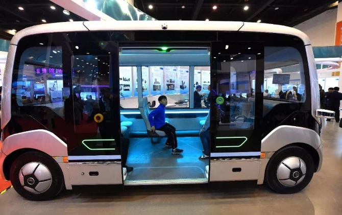 10月26日,小朋友体验自动驾驶巴士。当日,中国·河南开放创新暨跨国技术转移大会在郑州国际会展中心开幕。新华社记者李嘉南/摄