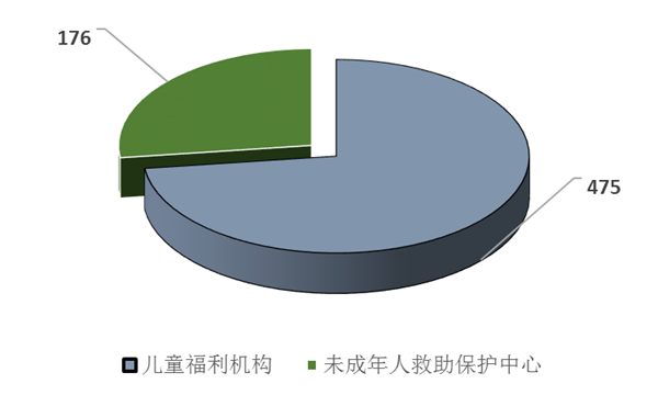 1.儿童保护机构数量稳中略减。随着国家对儿童保护工作的不断加强,孤儿数量逐年下降,儿童保护机构数量也随之稳中有减。2018年,全国共有儿童收养救助服务机构651个(见图4),比上年减少12个,其中儿童福利机构475个,未成年人救助保护中心176个。全国儿童收养救助服务机构共有床位9.7万张,比上年减少0.6万张,减少5.9%。