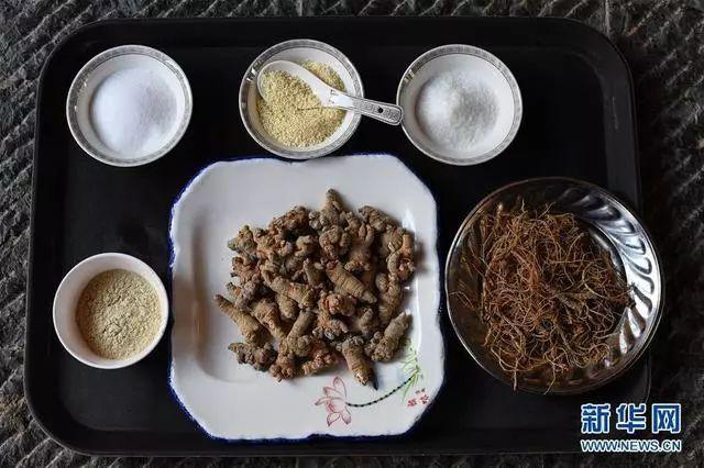 石林樱花峪药膳公园烹制三七药膳的三七和三七根