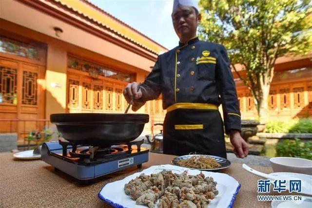 石林樱花峪药膳公园大厨杨先勇在烹制三七乌鸡汤