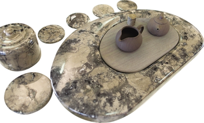 靠着独特而出色的品质,镇雄紫砂石壶在每年的文博会、南博会上赞声如潮,在茶具行业内各级评选中屡获殊荣。其中,刘健本人多次获奖,他创作的作品《黑轴瓷盘人物雕像》和《走泥丸》入选中国非物质文化人群研培计划优秀成果展。《黑轴瓷盘人物雕像》和《镇雄紫砂石茶具》被上海工艺美术学院博物馆收藏,作品《和道壶》荣获云南工艺美术第八届“工美杯”精品评选铜奖,作品《紫砂石茶具套装》被昭通市博物馆收藏。