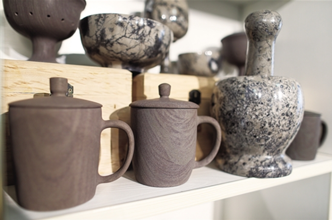 日前,在镇雄县城环西路旁的一个加工厂内,记者看到了让人啧啧称奇的一幕:对于一块块稀松平常的紫砂石,石雕工艺师采用整石冷雕技术,在切割机轰鸣声中,在刻制机钻头的“指点”下,经过一番选材、切割、打磨、雕琢,立即变身为茶具、石缸、影雕等各种美观实用、独一无二的文化产品。