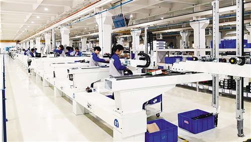 在珠江东西两岸,电子信息产业带和先进装备制造产业带正加速升级。图为广东拓斯达科技股份有限公司的工业机器人生产车间。郑 杨摄