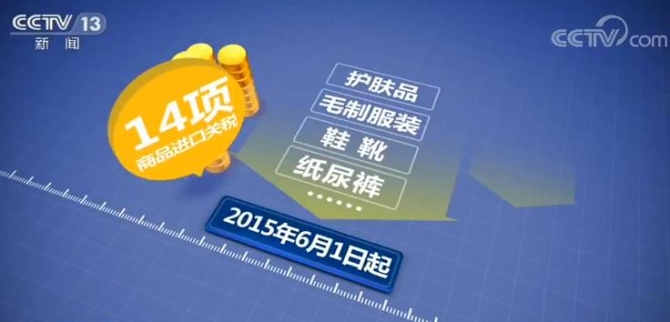 2015年6月1日起,我国降低了护肤品、毛制服装、鞋靴、纸尿裤等14项商品进口关税。