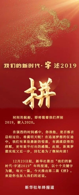 你,我,他,亿万人民敢拼敢干的劲儿,汇聚成中国气派的时代洪流。“拼”向未来,“拼”向梦想,让我们书写属于祖国、也属于自己的奋斗篇章。