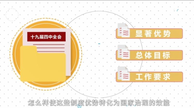 在四中全会的《决定》中,我们首先总结了经过多年探索和实践而形成的中国特色社会主义制度,以及这些制度所体现出来的显著优势,提出了进一步推进国家治理体系和治理能力现代化的任务,也提出了推进国家治理体系和治理能力现代化分阶段实施的目标和要求。现在我们需要做的是,怎样使这些制度优势转化为国家治理的效能。