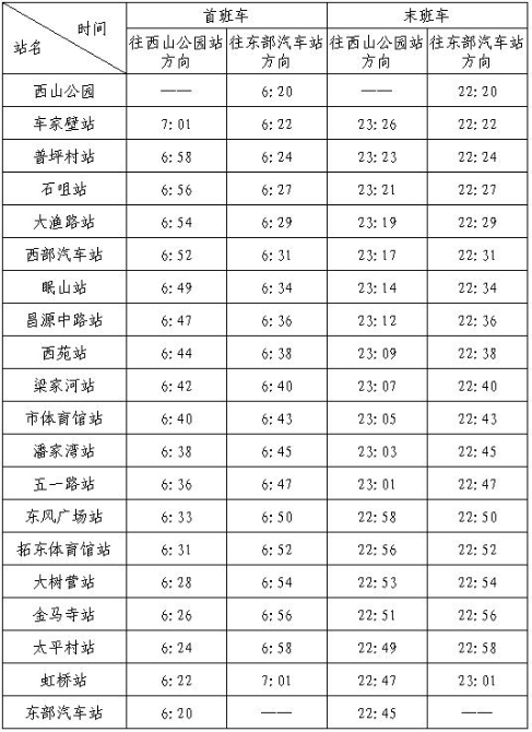 3号线首末班车时刻表
